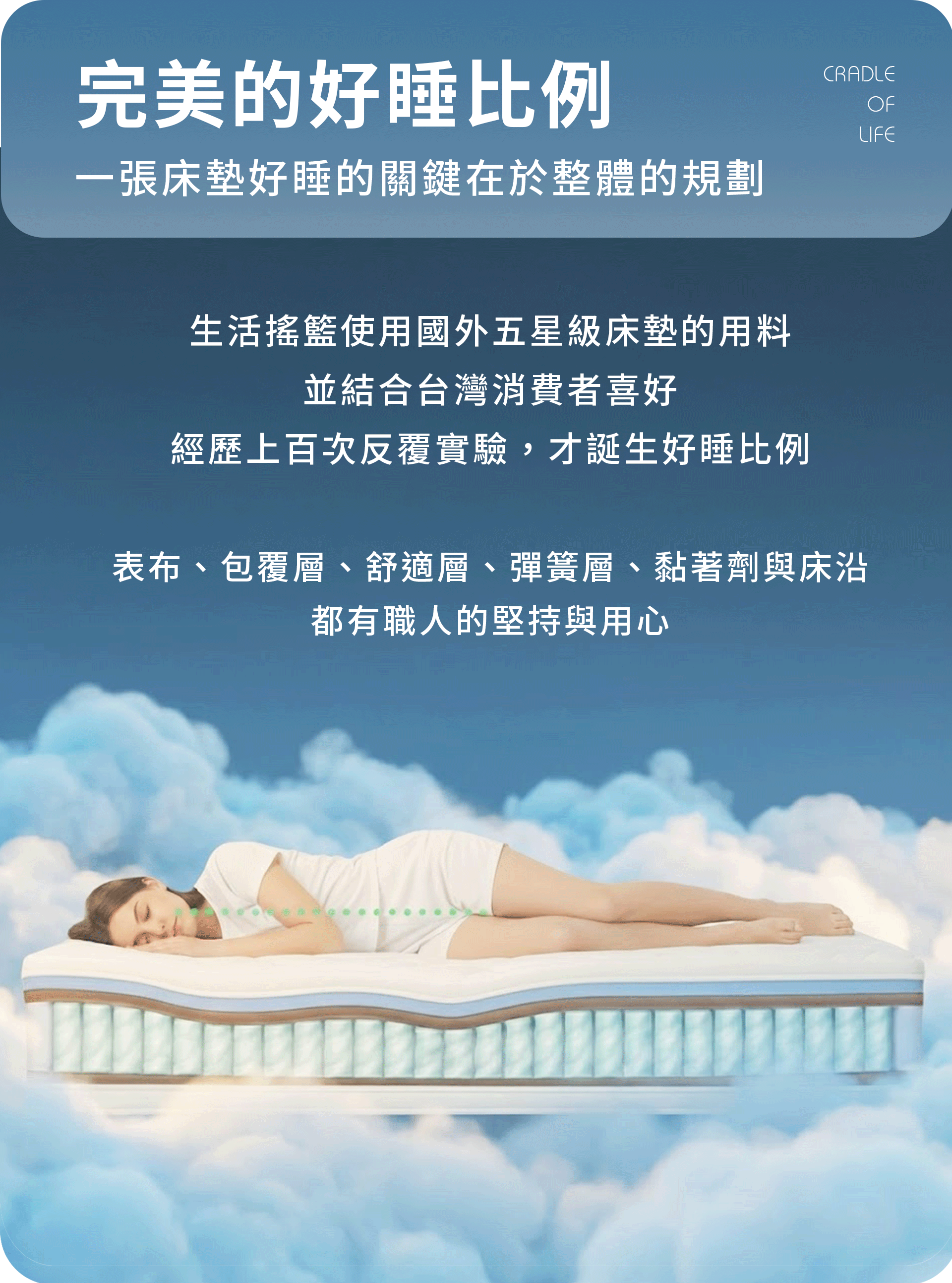 * 本賣場只單售床墊(上墊),下墊與床頭需另行加購,詳情請詢問客服