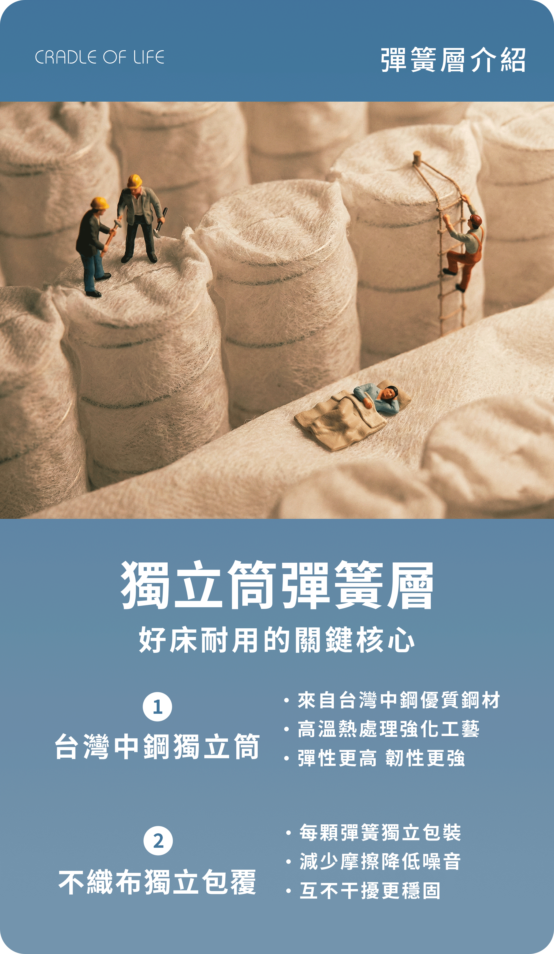 ❖ 核心彈簧:1080 顆高密度 1.8 硬式獨立筒(中鋼高碳鋼)