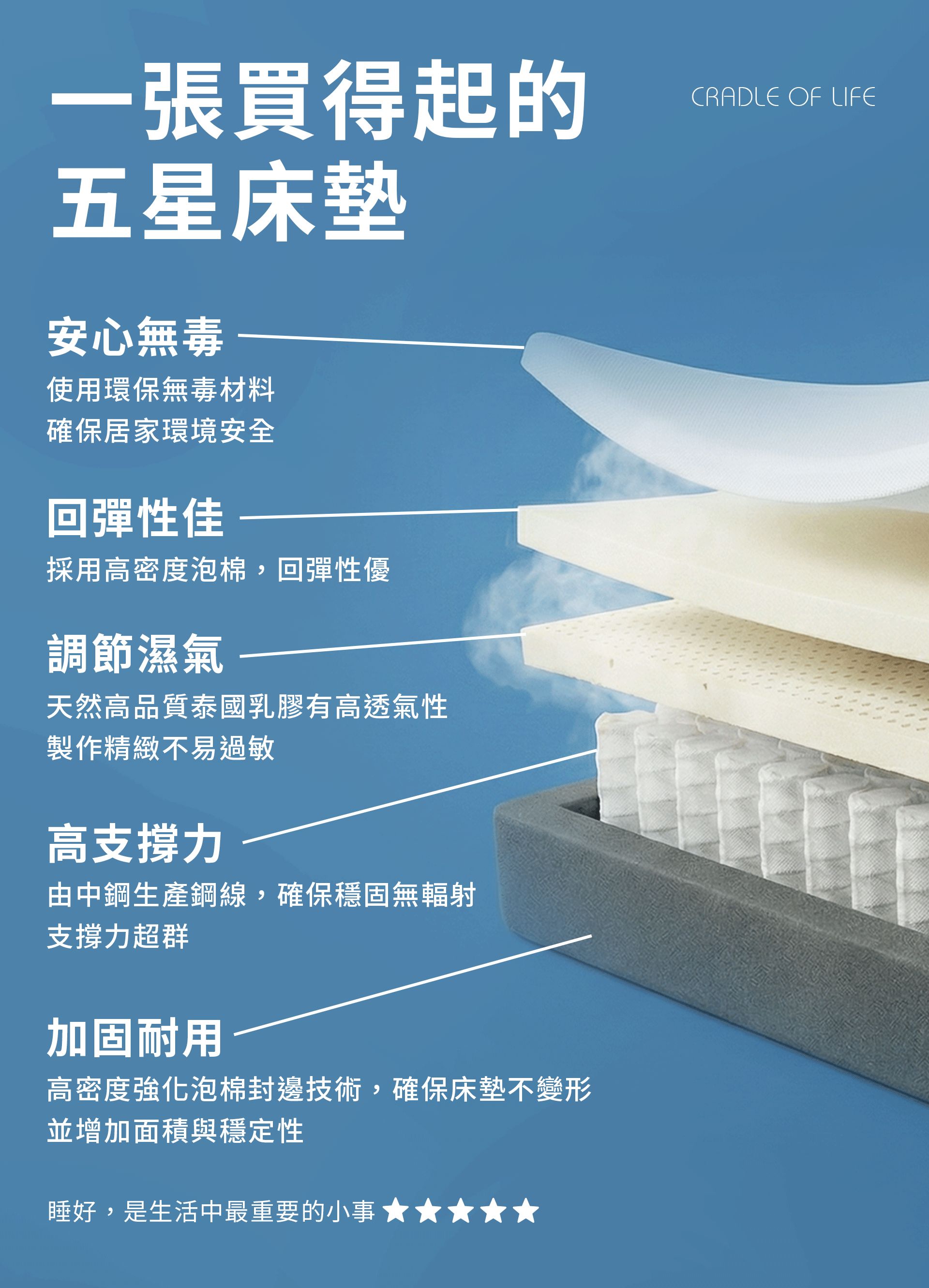 ❖ 舒適層:100%泰國原生純天然乳膠 5cm