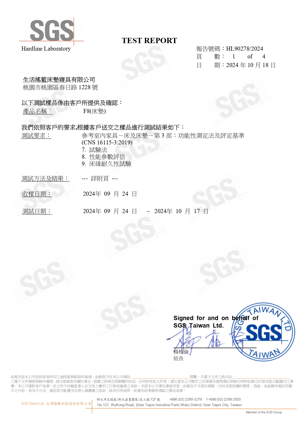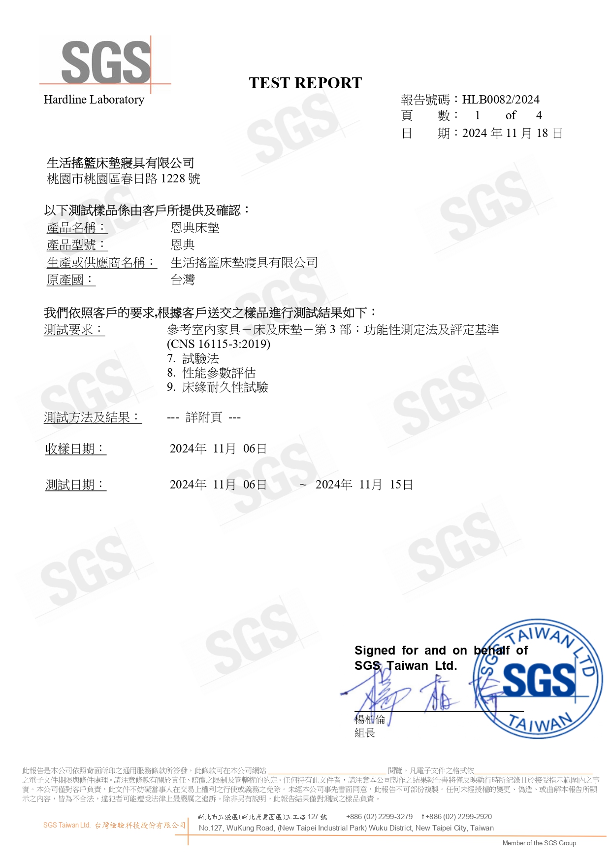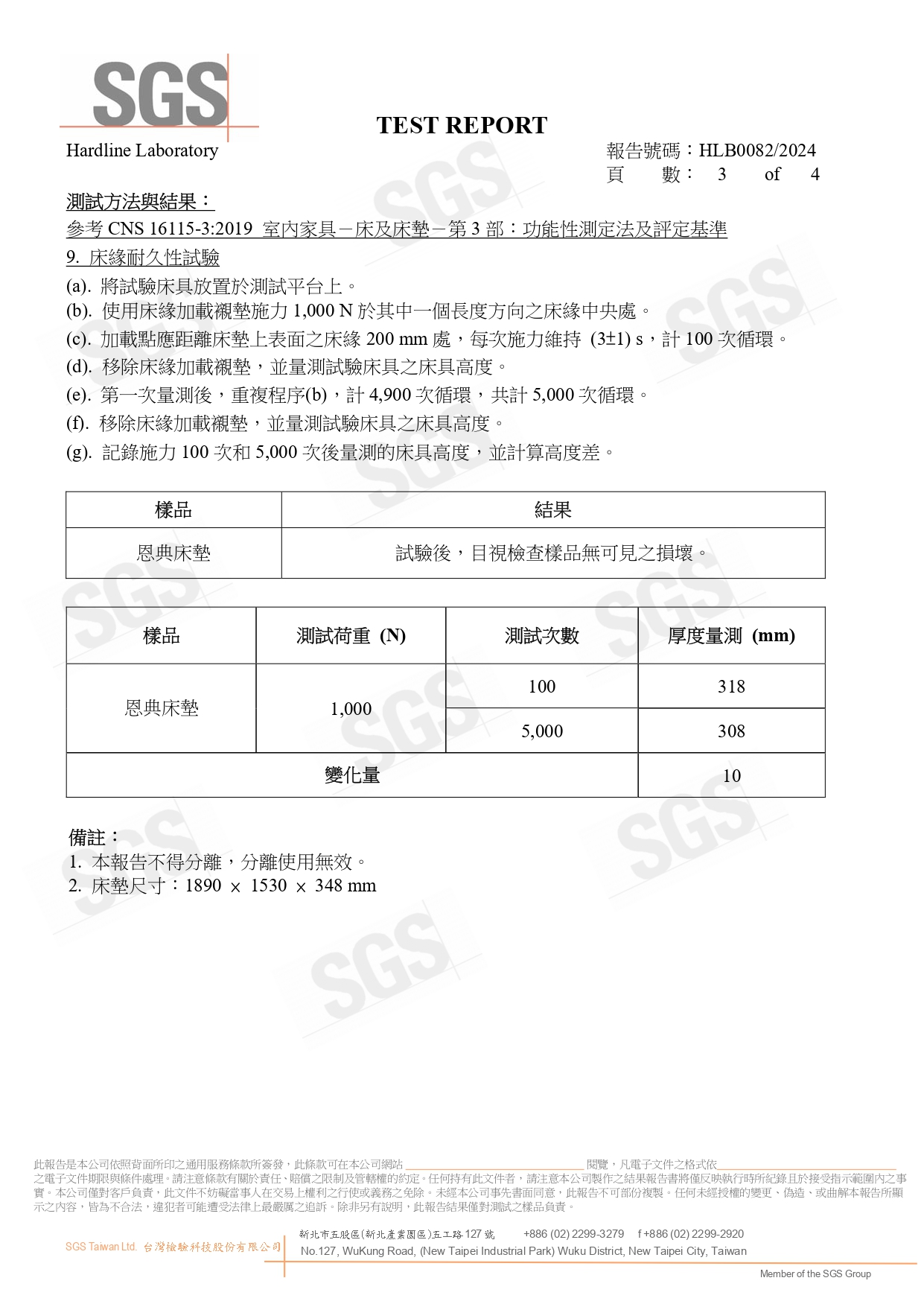 生活搖籃床墊不僅材料無毒,更追求極致耐用。經 SGS 模擬人體翻身滾動 30,000 次測試,結構依然穩固、無顯著凹陷,保證床墊長年的支撐品質。