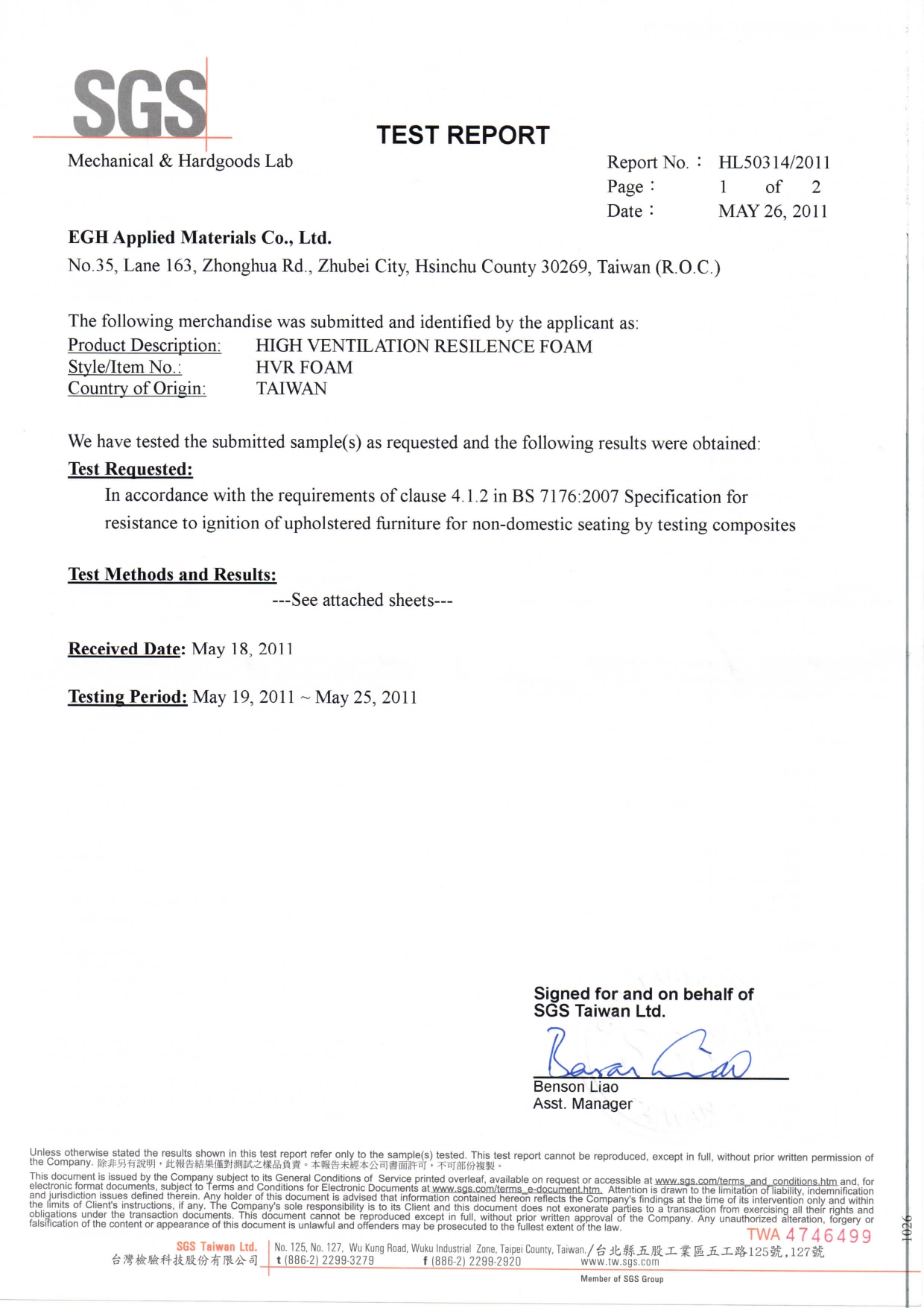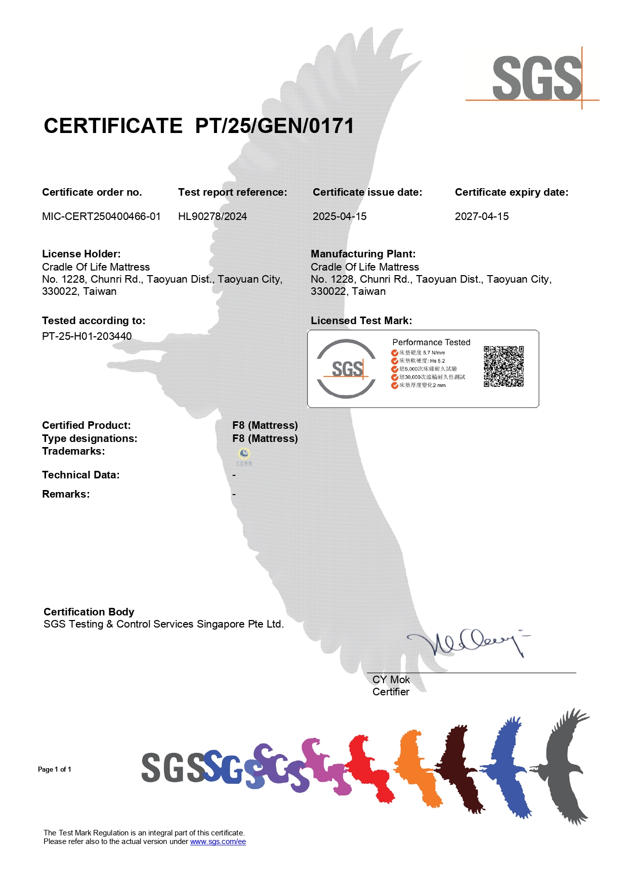 生活搖籃採用之水冷膠泡棉,具備優異的抗拉強度與涼感回彈特性。經 SGS 與 Intertek 嚴格測試,不含重金屬、塑化劑與任何有害化學物質,並符合國際防火安全標準。