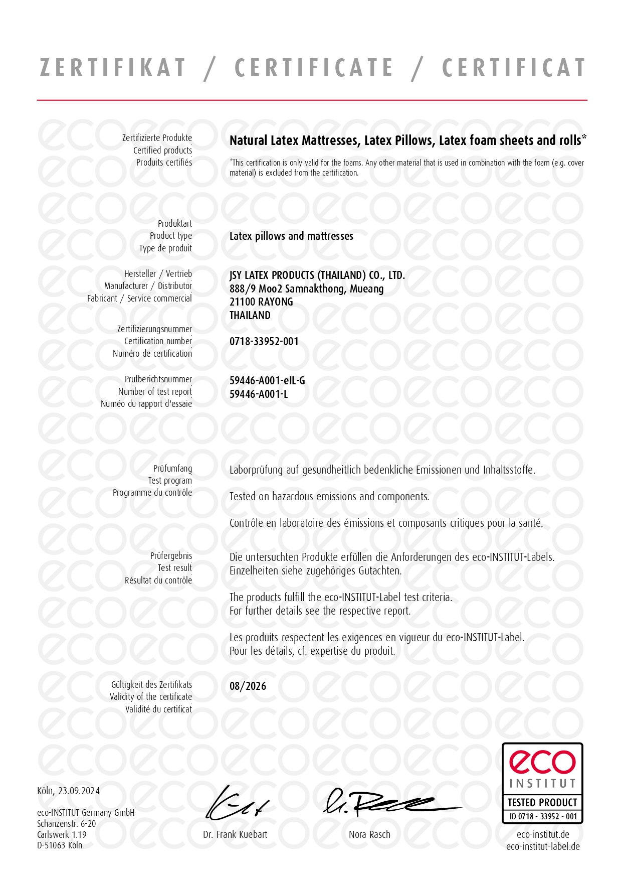 生活搖籃選用泰國 JSY 高品質天然乳膠。具備有機含量超過 95% 之認證 ,並通過國際環保無毒與永續森林管理之嚴苛審核 。
