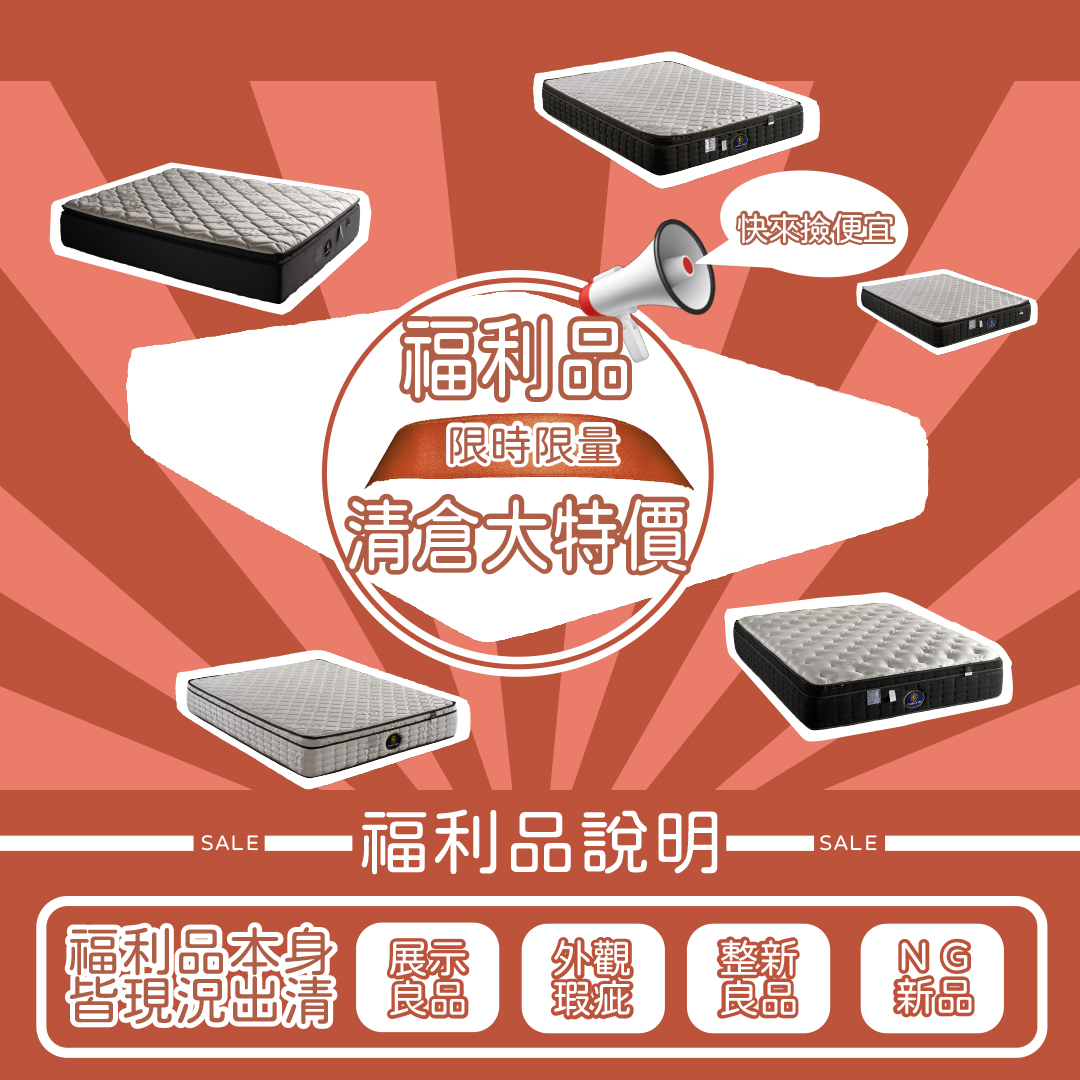 福利品為全新床墊,唯使用2025年10月前的乳膠原料製作。*