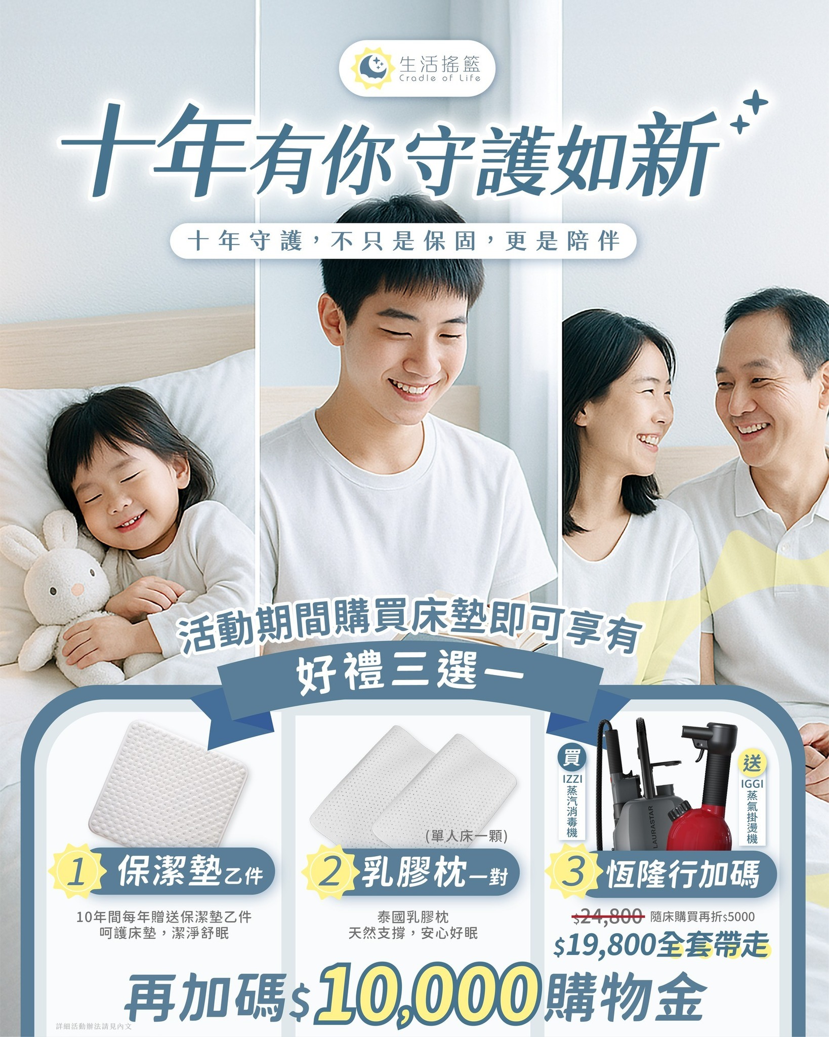 一、🎁 十年守護計劃|購買床墊,即享好禮三選一