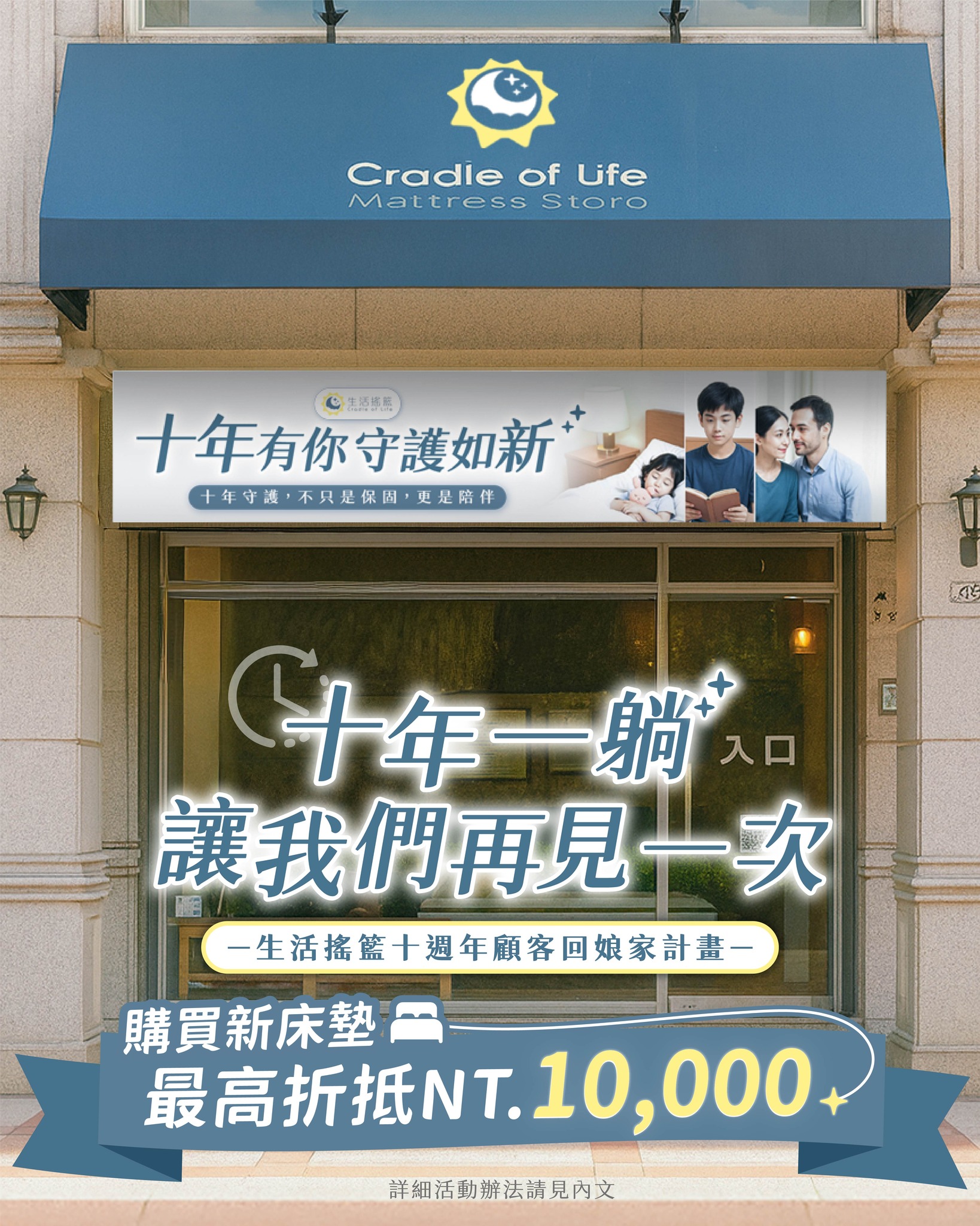 - 前10名符合資格顧客:舊換新床墊折抵 10,000 元