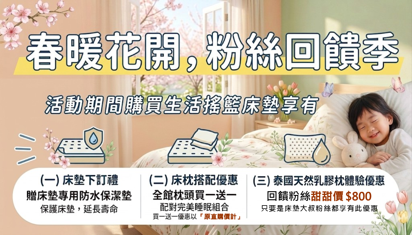 🎁 活動二:床墊大叔用甜甜價,帶你升級好眠體驗,找到屬於你的床枕組合